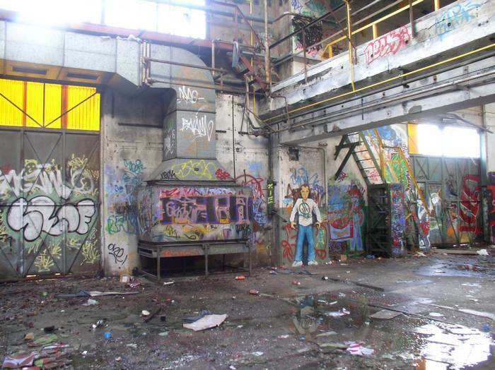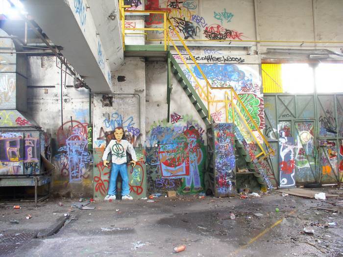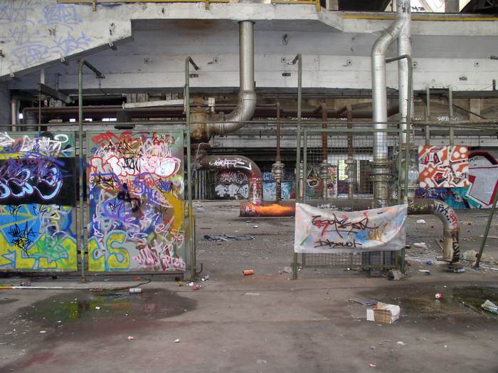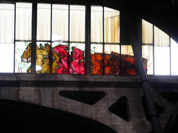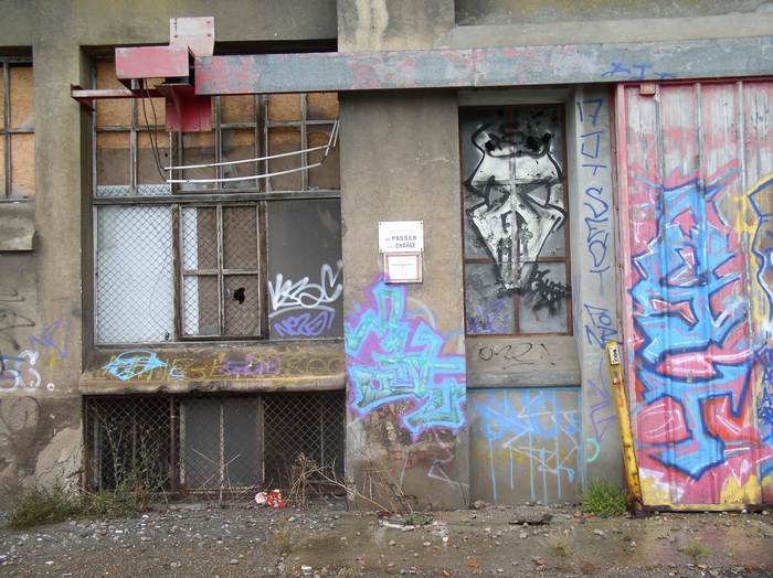 C’est en novembre 2002 que je me promène sur les rives de l’Ill et que passant devant les anciens bâtiments de la SACM laissés à l’abandon je vois quelques tags et autres tentatives de peintures. Attiré par ces décorations bariolées et le bâtiment imposant je m’approche pour le voir d’un peu plus près : la clôture qui devrait en empêcher l’accès baille et je m’introduis. Le choc, car il n’y a pas d’autres mots, dû à la vision de l’architecture du bâtiment et de ce qu’en ont fait les artistes tagueurs me cloue sur place. Ayant sur moi un petit appareil numérique je me mets à photographier au hasard tout ce que je voyais, fasciné par les grandes arcades du bâtiment et l’inventivité des tagueurs….